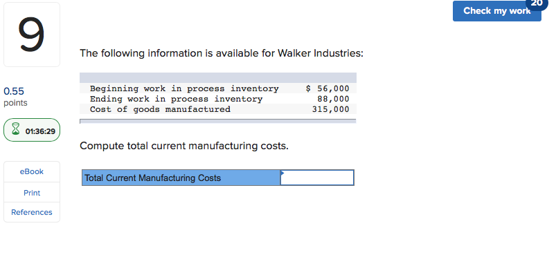 ACC 563 Quizzes and Exams Perfect Score Guaranteed. Beginning work in process inventory 30000 Ending work in process inventory 25000 Cost of goods manufactured 180000 Compute total current manufacturing cost. Beginning work in process inventory 30000.